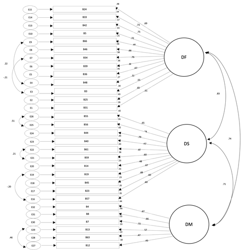 (EFA) and Confirmatory Factor Analysis (CFA) model, as well as the calculation