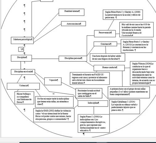 Adicional, se apreció cómo van surgiendo otros temas que de acuerdo a los enfoques teóricos. Se trata de aspectos relevantes como la importancia de cada uno de ellos, que se refieren a la disciplina personal como forma de vida, a la disciplina en el aula que es factor fundamental para el aprendizaje y la madurez psicológica que manifestó María en su relato de vida.
