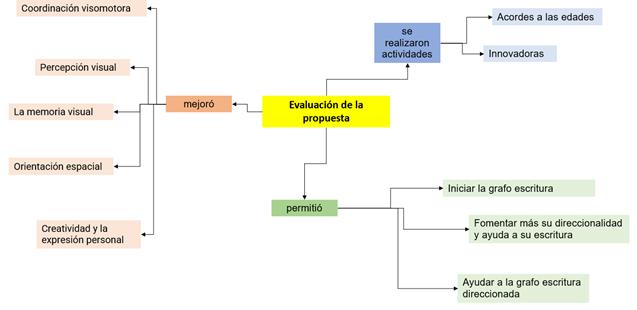 Se expone que la propuesta desarrollada, la cual se conforma como un material educativo con el objetivo fomentar el grafismo para el desarrollo de la estructuración espacial en niños de edad preescolar, está constituida por una serie de actividades lúdicas y educativas que permiten ayudar a los niños a mejorar su coordinación motriz fina, su percepción espacial, su memoria visual y su capacidad de concentración y atención.