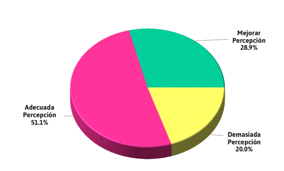 De acuerdo a Fernández y Extremera (2005), “la percepción emocional es la habilidad que permite al individuo identificar y reconocer tanto los propios sentimientos como los de aquellos que le rodean”. En el Gráfico 1 se expresa a porcentajes significativos relativos a la dimensión de la percepción, los cuales se diferencian así: el 51.1% adecuada percepción, 28.9% condición para mejorar la percepción y un 20% con demasiada percepción, esta habilidad implicaría la facultad para discriminar acertadamente la honestidad y sinceridad de las emociones expresadas por los demás. Es por ello que, las emociones una vez percibidas e reconocidas, deben ser expresadas y estimadas de manera apropiada para que no